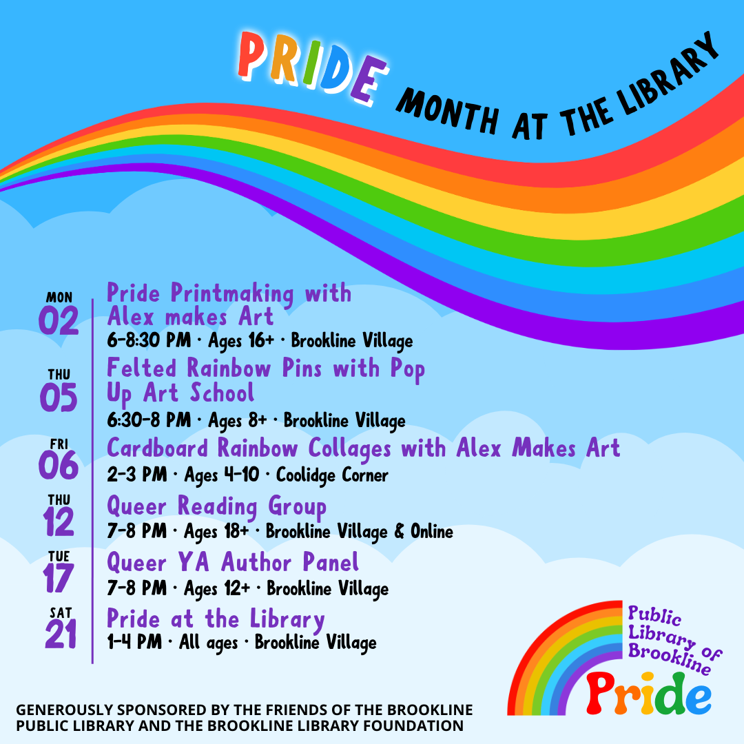 Pride Month programs are sponsored by the Friends of the Brookline Public Library and the Brookline Library Foundation.