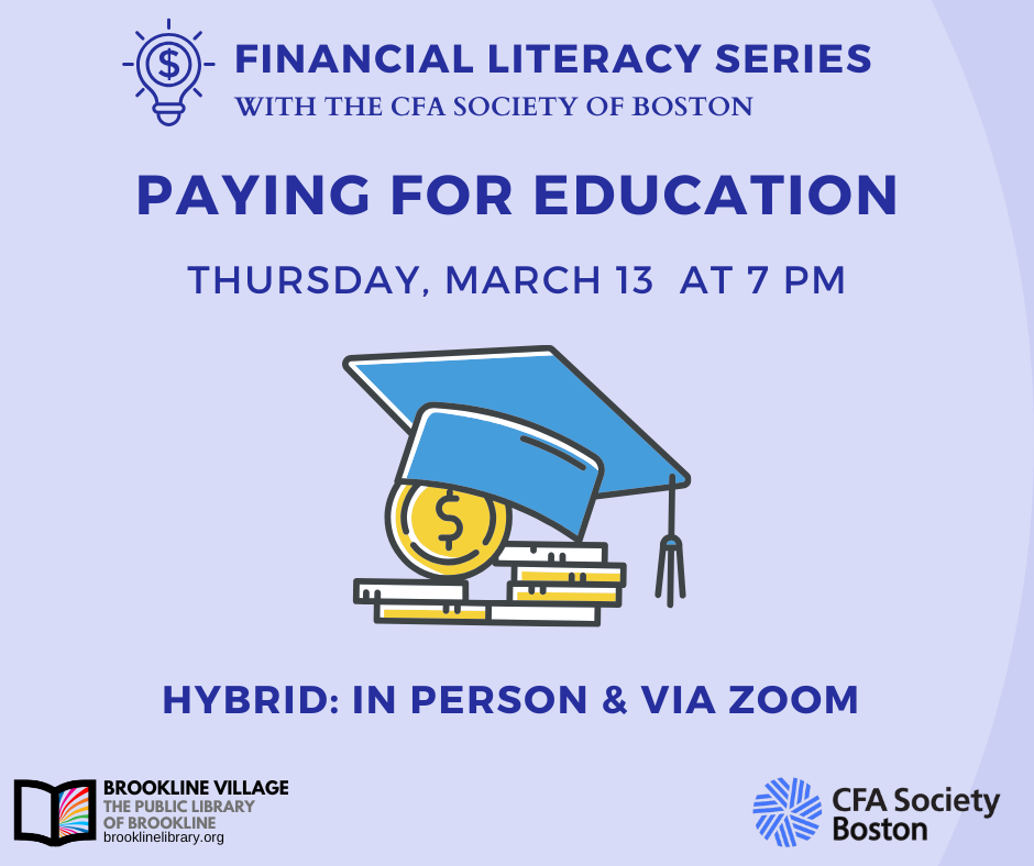 Are you thinking about education after high school? Have you considered the various options available to you? Do you have questions about the total costs? Would you like to know more about many funding sources? Join the CFA Society Boston for Paying for Education. Learn about answering common questions regarding the many different factors to consider. Be better informed before deciding your next steps and join this education session. This is an in-person or virtual (Zoom) event. Registration is required to get a Zoom link.
